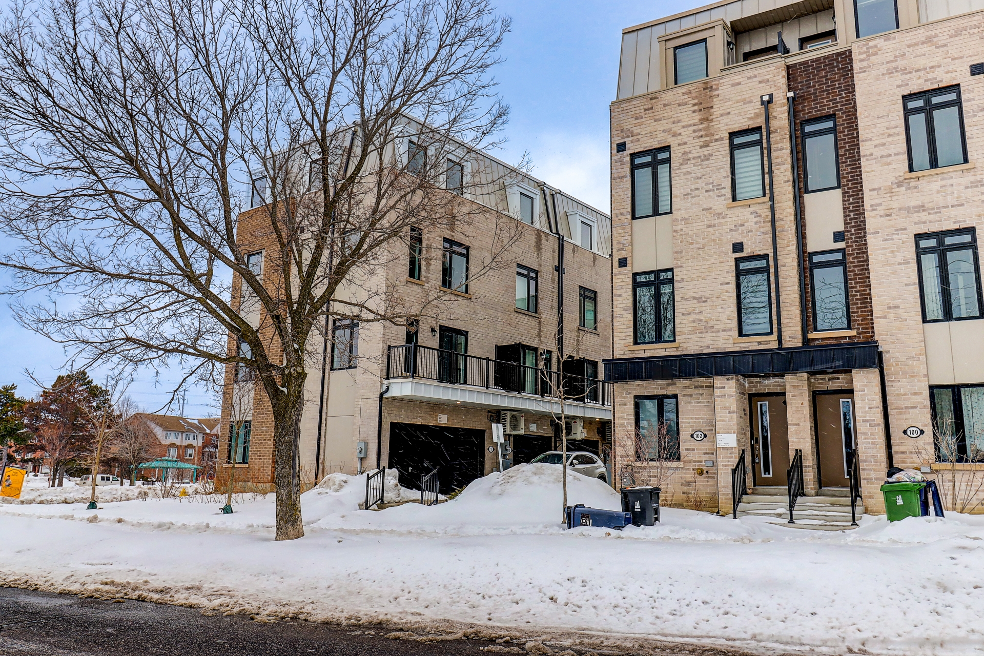 | Absolutely stunning corner luxury townhouse with 2 garages filled with abundant natural light, offering spacious living areas beautifully flooded with sunshine throughout. The thoughtfully designed lower level features a private office, ideal for today's work-from-home lifestyle, while the upper levels provide 4 generally-sized bedrooms perfect for family living and living area ideal for hosting guests. This exceptional home showcases soaring ceilings, high-quality flooring throughout, and a striking oak staircase, creating a refined and sophisticated atmosphere. Enjoy the convenience of a private ground-level garage with direct interior access and additional storage. This home features a gorgeous open-concept modern kitchen with breakfast area, while the spacious living and dining area walks out to a generous balcony, perfect for BBQ, relaxing or hosting gatherings. Two luxurious primary bedrooms, including one with tranquil park views and CN tower views, offer peaceful retreats, while a third bedroom with its own balcony boasts breath taking views. Ideally situated in a prime North York location, just steps to the Eglinton Crosstown LRT Subway Station and within walking distance to hospitals, schools, and parks. Enjoy unmatched convenience with No Frills, Walmart, Eglinton Square Mall, and Costco nearby. The area's appeal is further elevated by exciting Golden Mile developments, including a future joint campus by the University of Toronto and Centennial College, making this a vibrant and highly desirable neighbourhood. BBQs Allowed, Visitor Parking |